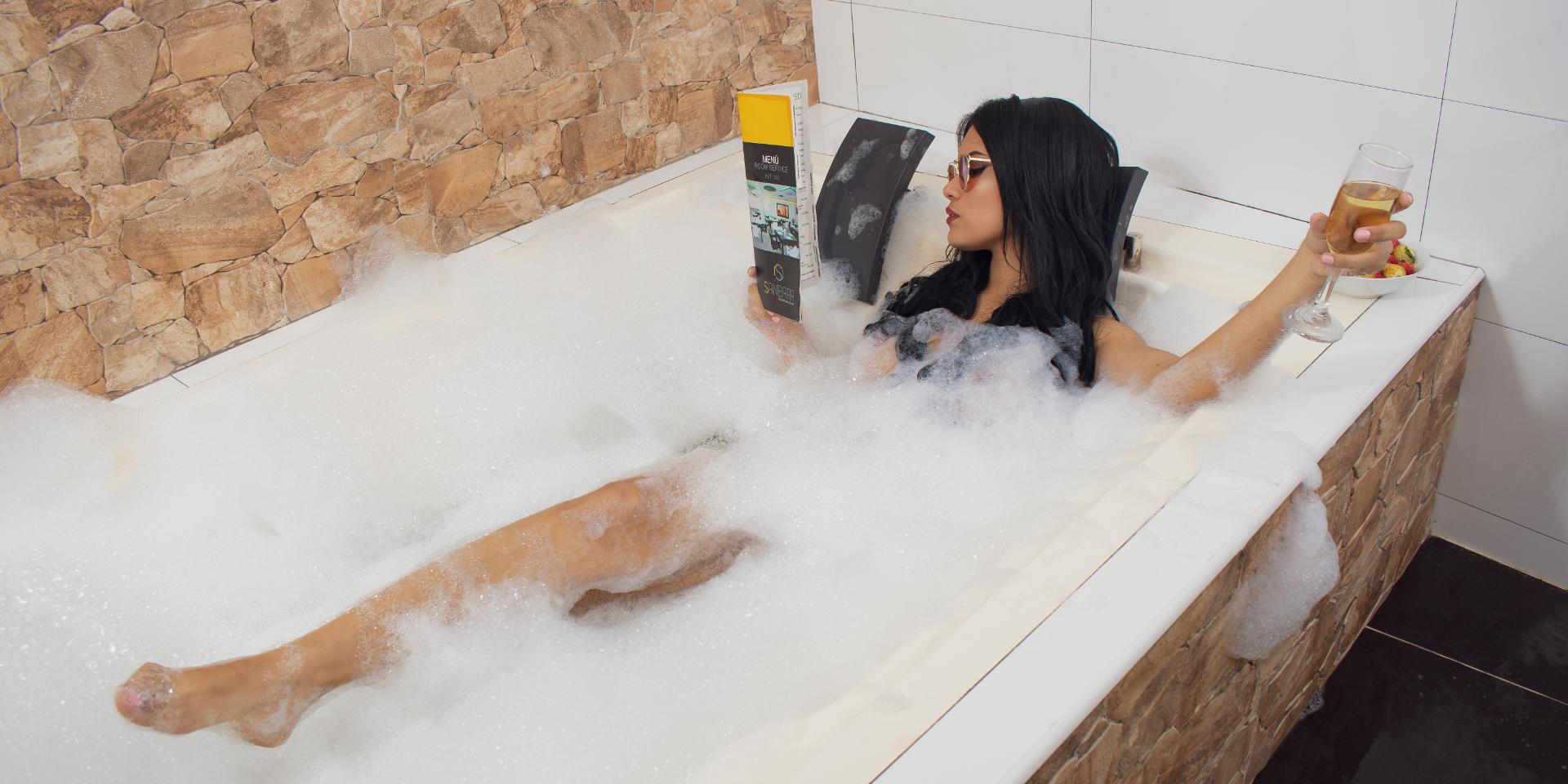 La habitación cuenta con una cómoda cama king size, comedor, juego de sala, jacuzzi con baño de espumas, acuario, balcón,...